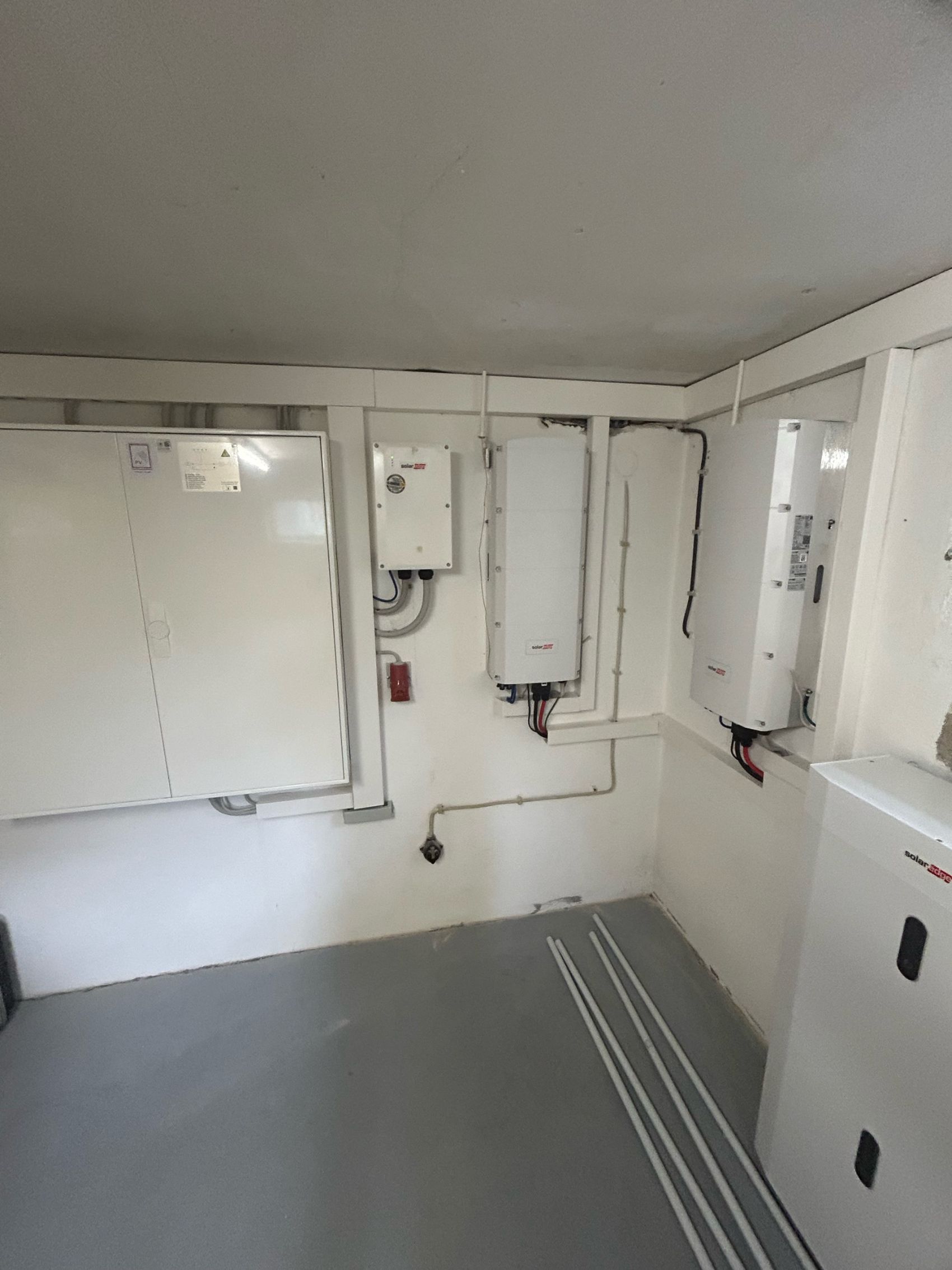 Die technische Systemlandschaft basiert auf Komponenten von SolarEdge und bietet ein Höchstmaß an Autarkie und Sicherheit. Ein SolarEdge SE8K-RWB48 Wechselrichter steuert in Verbindung mit S500B Leistungsoptimierern den Energiefluss, während die SolarEdge Home Battery (48V) mit 4,8 kW Speicherkapazität den eigenproduzierten Strom für die Abendstunden vorhält. Ein besonderes Highlight ist die integrierte SolarEdge BackUp Box: Sie ermöglicht eine dreiphasige Insellösung mit Schwarzstrombetrieb, sodass die Stromversorgung des Hauses selbst bei einem Netzausfall zuverlässig aufrechterhalten wird.