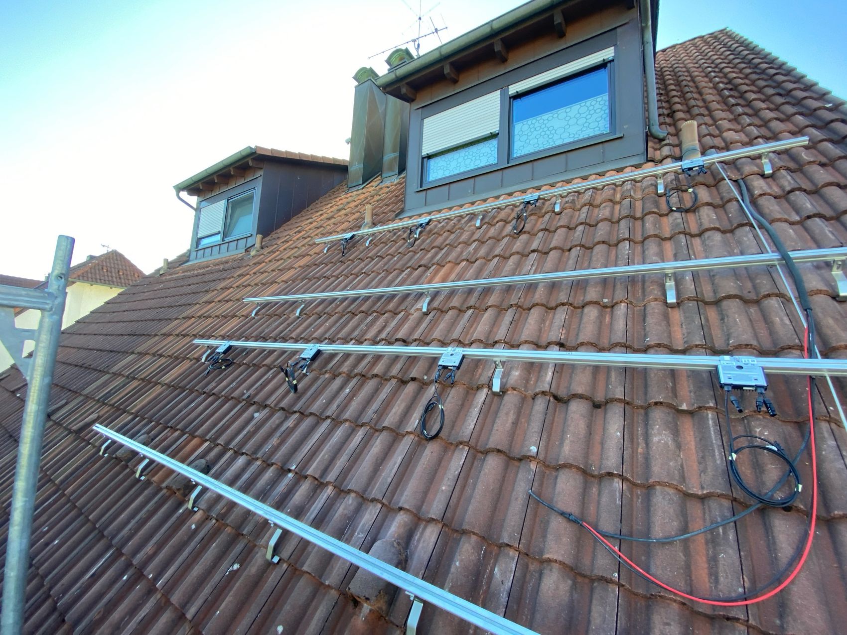 In Eckental haben wir ein leistungsstarkes PV-Anlagenprojekt mit einer Gesamtkapazität von 11,34 kWp realisiert. Für die Installation auf dem Dach wurde eine Schletter-Unterkonstruktion verwendet, die speziell für die Frankfurter Pfanne ausgelegt ist und einen sicheren Halt der 28 Module garantiert. Die Anlage zeichnet sich durch eine hybride Modulbelegung aus: Zum Einsatz kommen 18 hocheffiziente Solarwatt Vision 5.0 Glas/Glas-Module mit jeweils 455 Wp sowie 10 kompakte Solar Fabrik Mono S5 Halfcut Glas/Glas-Module mit 315 Wp.