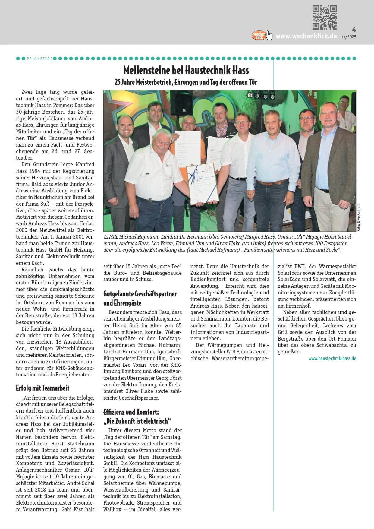 Seit der Gründung im Jahr 1994 ist unsere Firmengeschichte geprägt von vielen erfolgreichen Zeiten und bewiesener Kompetenz. Mit viel Kontinuität im wirtschafltichen Arbeiten wuchs die Haustechnik Hass GmbH vom kleinen Elektrofachbetrieb zu einem mittelständischen Haustechnik-Dienstleister heran, der den Anspruch hat, seine Kunden rundum zu bedienen.